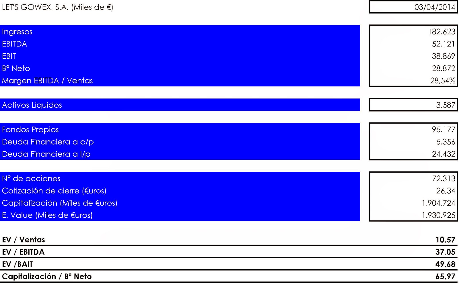 a decir que la totalidad de las acciones de GOWEX tenían un precio en bolsa de